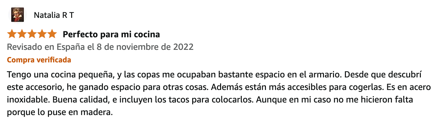 El colgador cumple con su función, es muy útil para las copas. Estoy encantada.